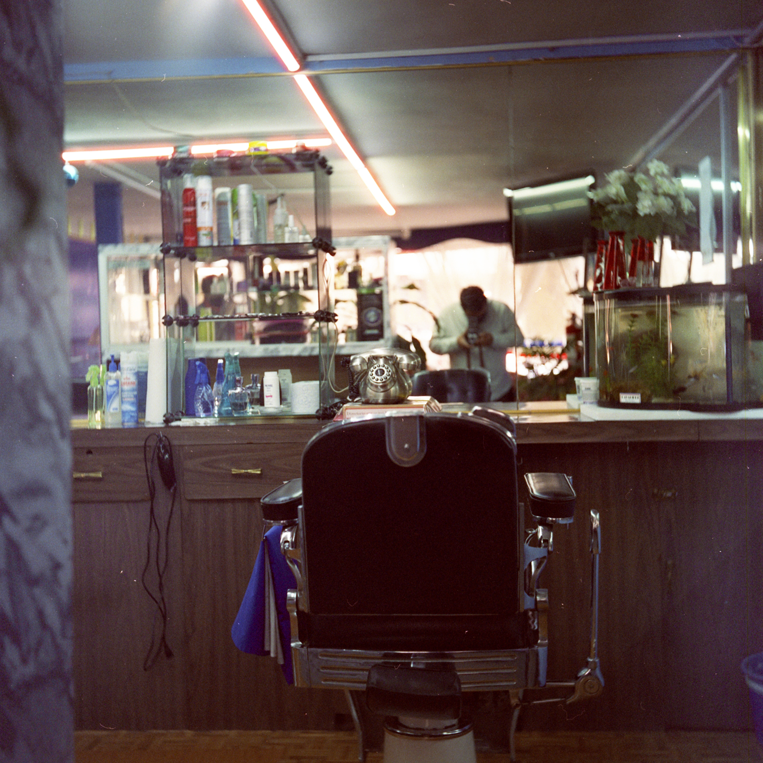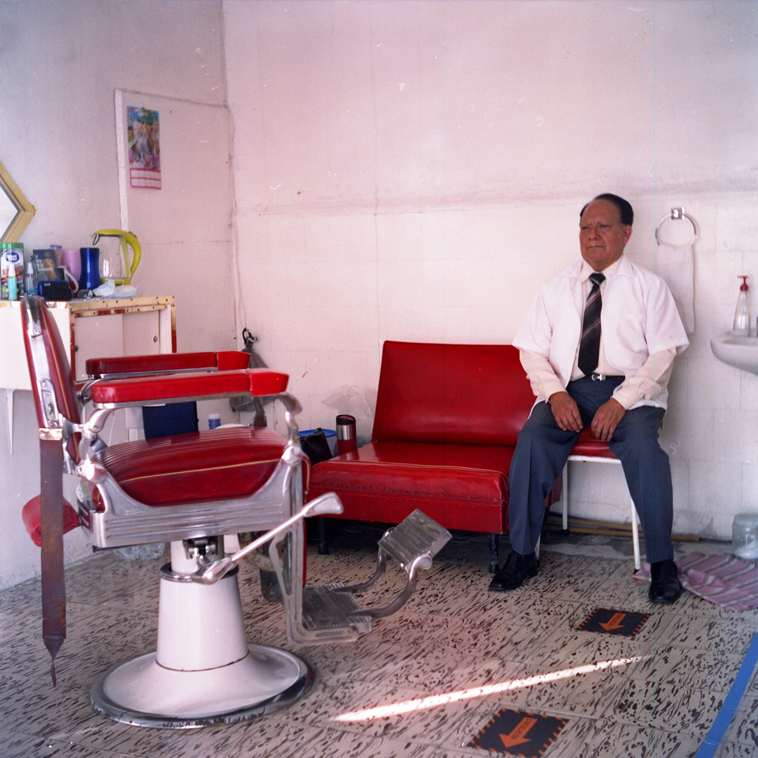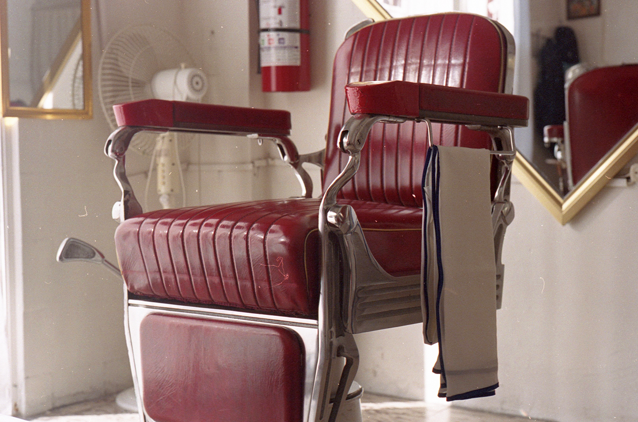 Usa el verbo arreglar como si su oficio se tratara más que de arreglar barbas y peinados; habla de arreglar como si ahí, dentro de las cuatro paredes donde nuestra Yashica encierra el tiempo silenciosamente con un clic, y luego un clac, los espejos dorados y las cortinitas discretas, y la piel rojo intenso de sus sillas de orgullo, arreglaran la vida de uno mismo.