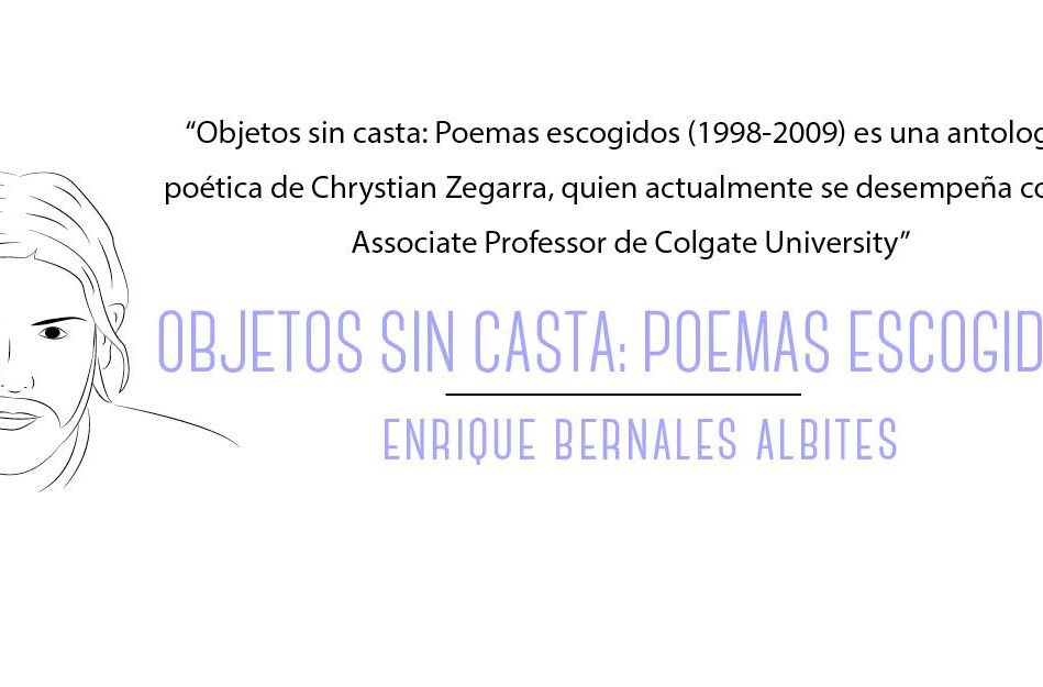 Objetos sin casta: Poemas escogidos (1998-2009) es una antología poética de Chrystian Zegarra, quien actualmente se desempeña como Associate Professor de... Sigue leyendo