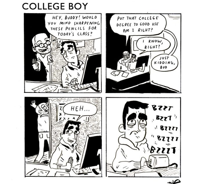 Miguel nació en Caracas, Venezuela y pasó su niñez en la casa de su abuela con resmas de papel y cajas de lápices; siempre encontrando qué dibujar esperando el final del bloque de telenovelas que servía de banda sonora. Décadas más tarde, nada lo hace más feliz que un infinito suministro de papel y herramientas con qué dibujar, y aunque ya no hay telenovelas de fondo, parece estar condenado eternamente a la práctica hipnotizante del dibujo.