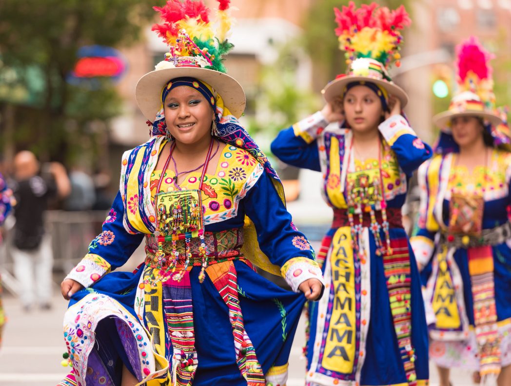 La calle estaba rebosante de bailarines concentrados en sus quehaceres previos, ajustando arreglos a sus trajes tornasolados, marfiles telas o simplemente conversando entre ellos. En tan solo una calle vimos caporales bolivianos con brillantes trajes de tonalidades primarias, enaguas, sombreros, algunas bailarinas chinas de elegantes vestimentas de seda, bailarines de Hip-Hop, una comparsa y muchos niños bailarines de sonrisas ansiosas acompañados de sus padres. Como aún faltaban unos quince minutos para el comienzo, nos desviamos por Broadway, que era la ruta principal del desfile, y buscamos una buena ubicación que encontramos frente a la heladería Venchi casi en la esquina de la 17th y de Union Square. Ya había mucha gente esperando en las barreras de contención, preparando sus cámaras o conversando entre ellos con alegría contagiosa y fraterna. Es fácil conversar con un neoyorkino, más aún en este tipo de celebraciones. Otras personas iban y venían abstraídas en la urgencia de una cita, paseando a sus mascotas, concentrados en sus teléfonos o quizás también buscaban un buen lugar para disfrutar del espectáculo.