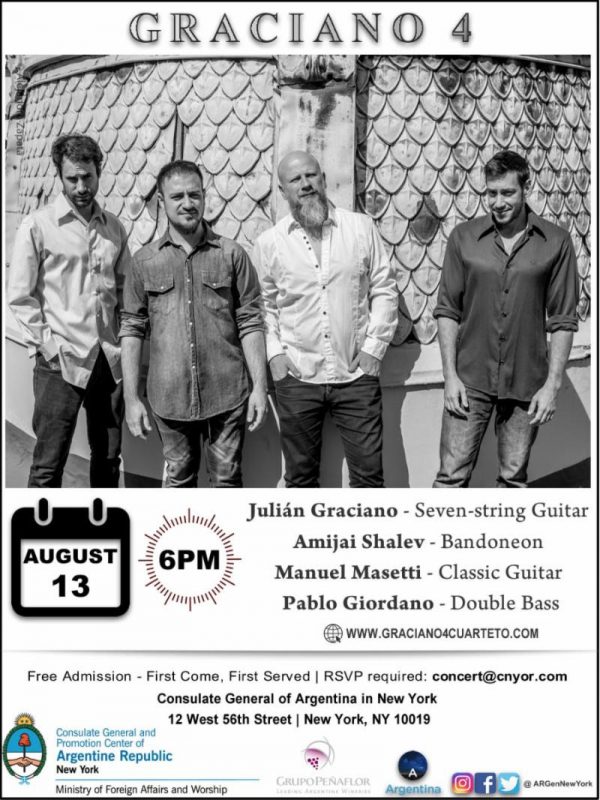 El cuarteto de tango instrumental, Graciano 4, presenta su primer álbum Alquimia, basado en un repertorio de composiciones originales de Julián Graciano. Un sonido de tradición en su instrumentación, formado por el bandoneón de Amijai Shalev, la guitarra clásica de Manuel Masetti y el contrabajo de Pablo Andrés Giordano, bajo la dirección de Julián Graciano en guitarra clásica de 7 cuerdas y composición.