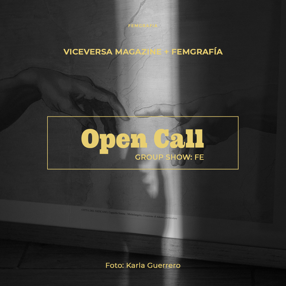 El siguiente group show, que saldrá publicado en ViceVersa Magazine y Femgrafía durante el mes de septiembre, reúne imágenes relacionadas al concepto de fe, respondiendo de manera particular y colectiva; como imágenes abstractas, extensiones de iconografías pertenecientes a la cultura visual, retomando un contexto histórico, estético, filosófico o mediante un análisis artístico – periodístico.» – Karla Guerrero, Femgrafía