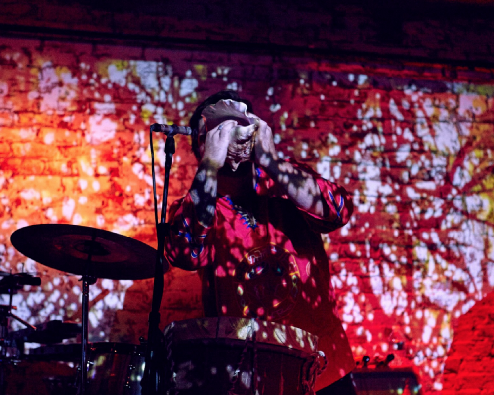 Los sintetizadores distorsionados acompañaron el sendero que abrían dos tenues maracas. Son muchísimos los instrumentos autóctonos que se aprecian en el escenario, todos hacen pensar en la transformación de la materia, en su elaboración tallada a miles de kilómetros de Manhattan. La proyección enriquece la pieza y en medio de la oscuridad, los tres músicos tienen sobre sus cuerpos y sus caras, las luces de miles de estrellas y nebulosas. Un cosmos entero que gravita y que causa la misma impresión en una tribu o en un bar.