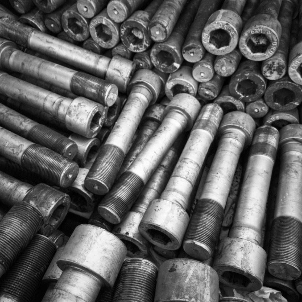 EN EL ORATORIO PROFANO del trabajo, cuentas de un rosario tallado con sudor y sufrimiento: arandelas, tornillos y tuercas. Articularon el movimiento sobre los caminos de hierro y unas manos sobre otras manos, compusieron la liturgia del engranaje. Ahora, reliquias de un tiempo mudo y anónimo, son quietud y brillo triste en las estrías. Arrojadas cual estirpe destronada, reposan como piezas de un mecano sin manual de instrucciones.