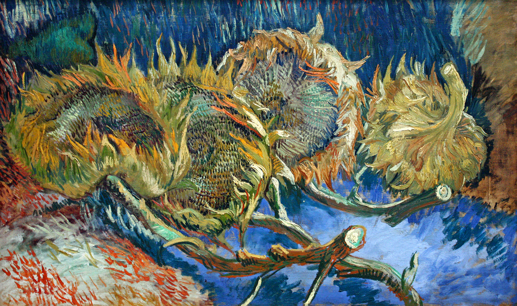 “He intentado expresar con el color rojo y el verde las terribles pasiones de los hombres”, dice Vincent Van Gogh en una carta dirigida a Theo, su hermano. El color es lo que empuja, lo que se sale de los bordes, ¿pero qué color es ese que sale de adentro de los girasoles, de las estrellas, con pincelada violenta, arremolinada, circular? No es ya el color real de las cosas, es el color que surge del trazo grueso y rápido, que surge del estado de ánimo de Vincent que pinta, sí, las terribles pasiones de los hombres, pero no ya una pintura naturalista, que expresa lo real tal como lo ven los ojos. “Me sirvo de los colores arbitrariamente para expresarme de modo más intenso”, afirma Vincent. Pero no el color de los impresionistas, el efecto de la luz sobre las cosas, dicho así de modo científico.